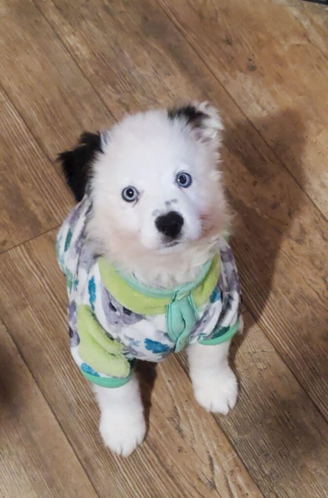 Glick is a super happy, seven-ish month old vocal and typical bossy Aussie puppy. He was found as a dying neonate from a local Amish breeder. He was given round the clock critical care by a team of skilled fosters and now he is a radiant little