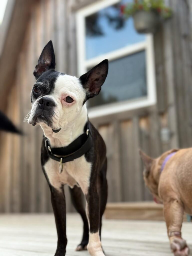 Poppy is an 8 year old Boston terrier who absolutely loves people, dogs and cats.