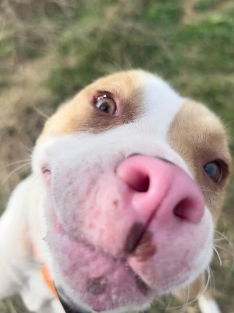 Sweet doesn’t begin to describe this girl; she is a little bit timid of new people at first, but a treat and a kind word makes her feel safe, and then her joy shines bright and you may even see a little zoomie. Moments like these really feel like she’s saying “oh, your my new friend??! Yaaay!!!!”