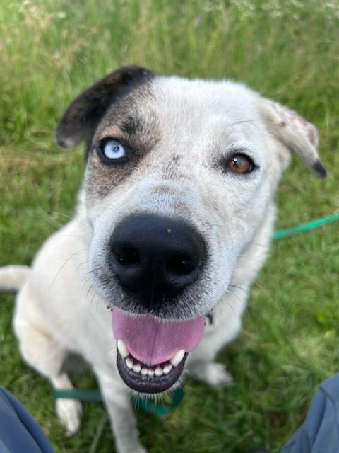 Macy is a 50 lb, 4 year-old husky mix who has beautiful heterochromatic eyes and a fun upbeat personality. She knows how to sit before her meals and is working on some simple basic obedience- she’s a very smart girl!