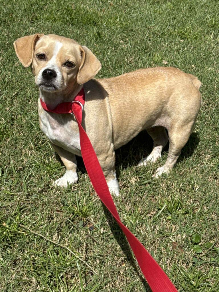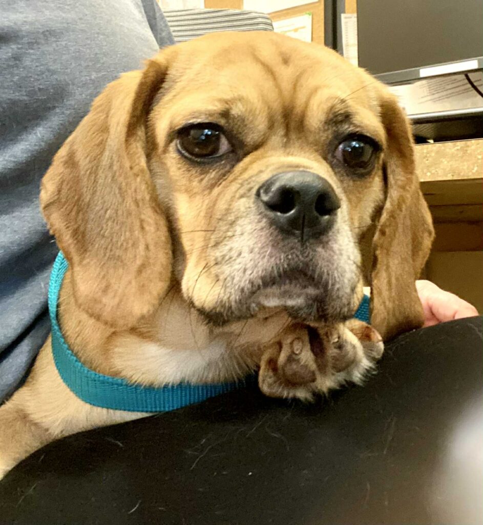 This is Babs. She is a 3-4 year old Puggle. She came in to shelter with a horribly broken leg. She’s had multiple surgeries, to the tune of $15k. She can be energetic and fun (a bit cuckoo) but hilarious and lovable. Very cuddly and very dog friendly. Even though she walks a bit wonky, she would love a fenced yard to zoom around in. We would not be comfortable saying she is cat friendly.