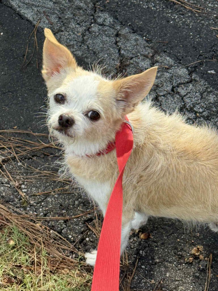 This is Monkey. She is an 11-12 month old, 6-7 lb, Scruffy mix who is bossy with other dogs but loves to play with others and has always lived with other dogs. Loves to be held and very sweet. Cat test pending.