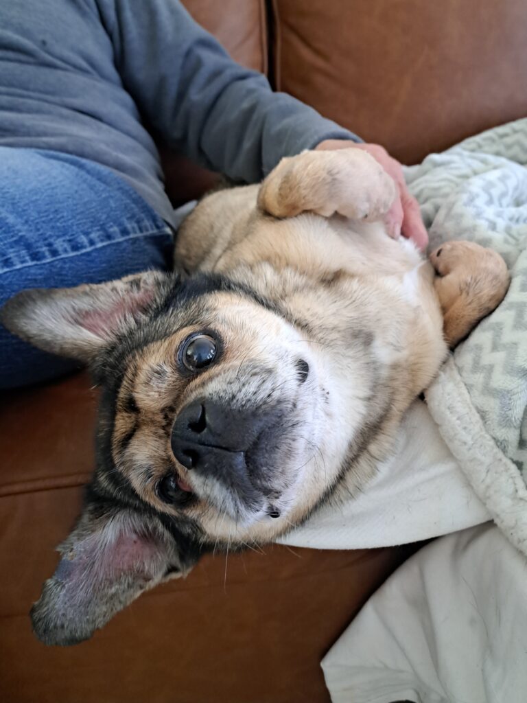 We want to find her a home where she can start off happily as the only pet. We know she likes puppies, but she still has some defensiveness around adult dogs. It’s not a big deal. We just don’t want her to have to live with anymore discomfort.  She deserves to have her own space to enjoy.