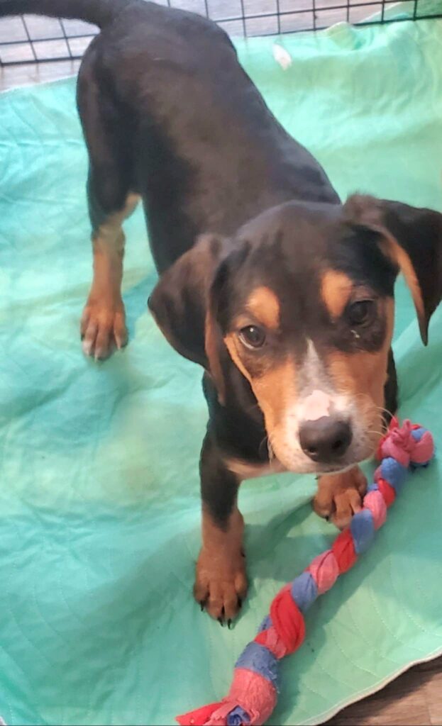 He’s a sweet little 4 month old beagle/foxhound mix, now available for adoption. He’s going to make someone very happy, if he gets the chance.