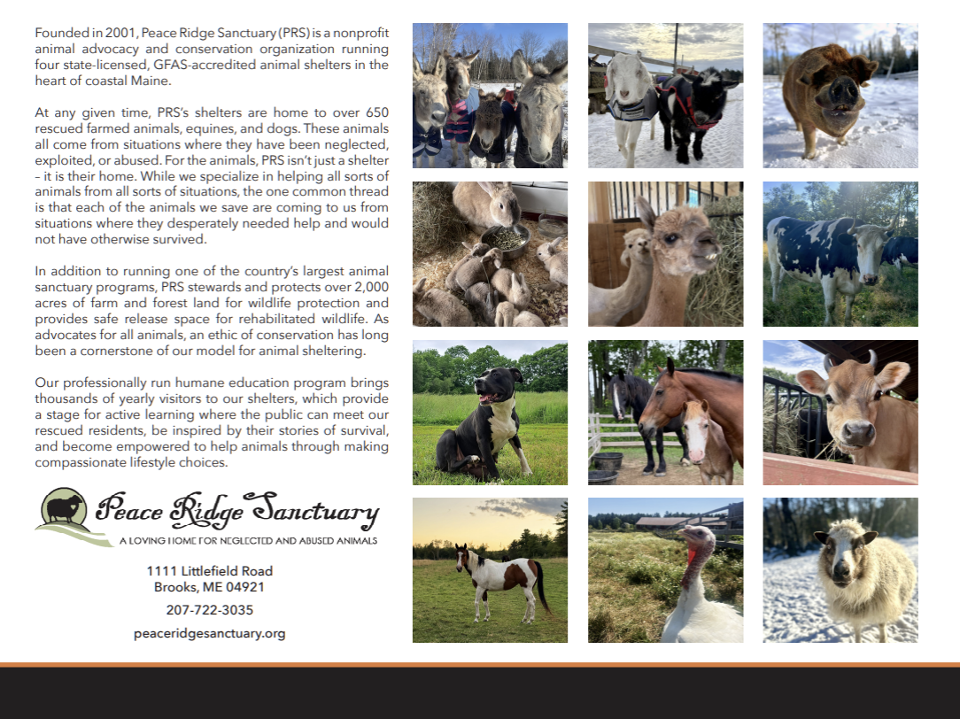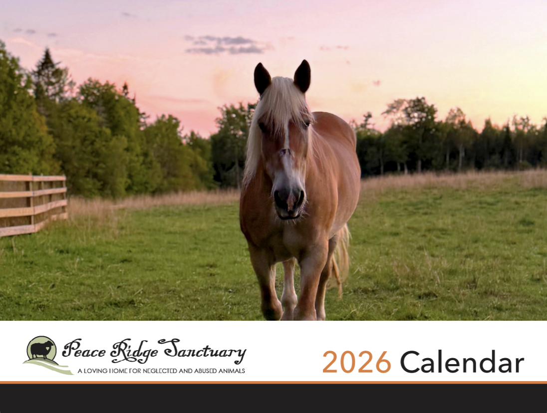 See many of your favorite animal residents featured in our 2026 Peace Ridge Sanctuary benefit calendar!